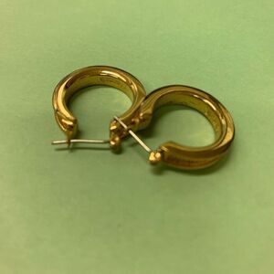 Napier Gold Tone Hoop Pierced Earrings. Good condition, one stem has a slight bend. Both close tightly without a problem.
