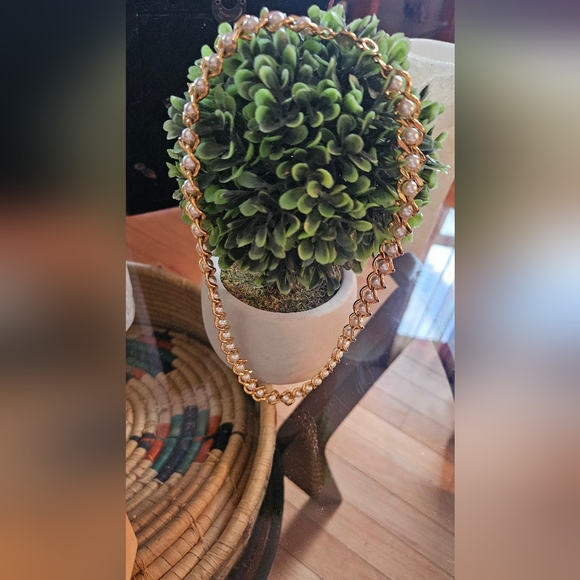 Stylish necklace with gold links and pearl accents. Ideal for elevating any outfit.