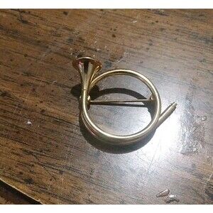 Napier Musical Instrument Design Bugle Horn Brooch Gold Tone Pin 1 1/4