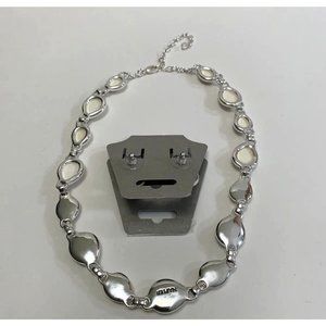 Napier Necklace And Pierced Earrings Set. A creamy white and silvertone color. Teardrop shape. Lobster Clasp. Good condition.