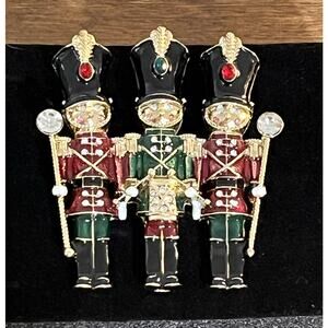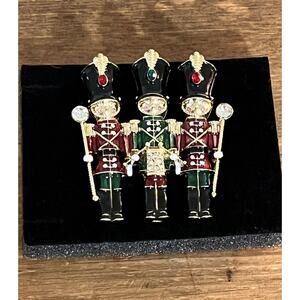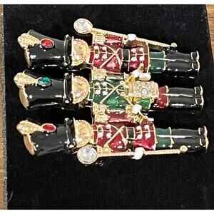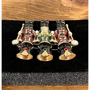 Napier Nutcracker Trio Christmas Brooch Enamel Rhinestone Gold Tone Holiday Pin