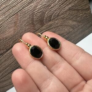 Napier Oval Black Rhinestone Gold Tone Leverback Pierced Earrings