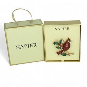 Add a festive sparkle to your holiday wardrobe with this stunning Napier Red Cardinal Christmas Brooch.