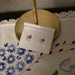 Elegant Napier earrings with striking red stones. Surrounded by sparkling silver accents. Perfect for any occasion.