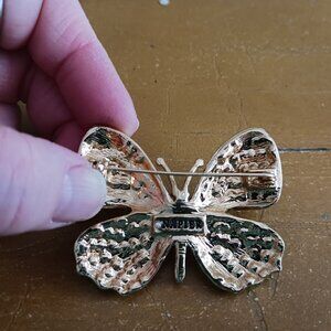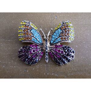 Napier Rhinestone Butterfly Brooch Pin Multicolor Gold Colored 2" x 1.5" Good used condition. No flaws.