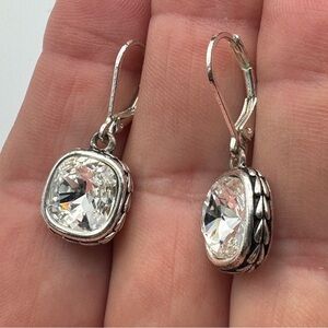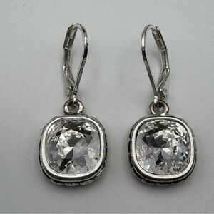 Napier Silver Tone Cushion Cut Crystal Drop Earrings – 0.5”