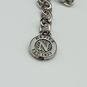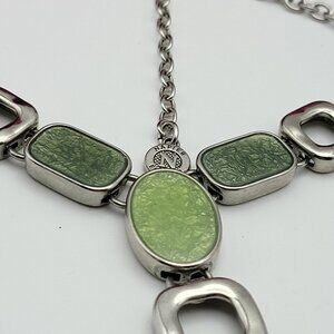 Napier Silver Tone Green Enamel Y-Drop Necklace Faux-Gem Art Deco 19" Adjustable