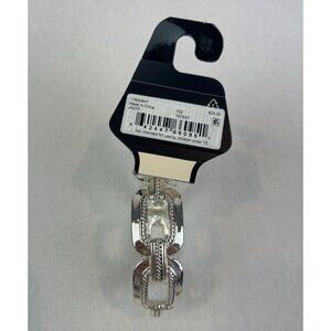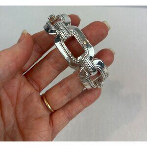 Napier Silver Tone Hinged Bracelet Textured Chunky Links Jewelry Stretch