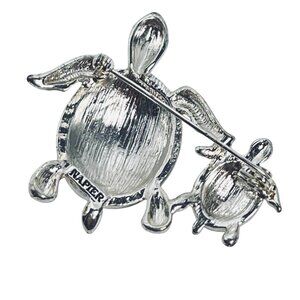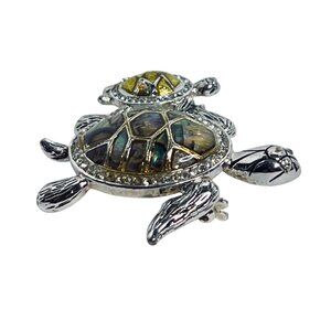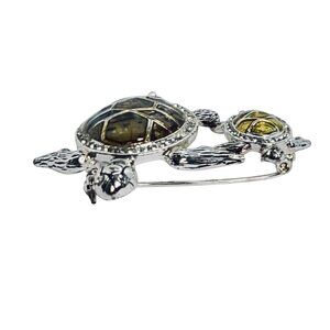 Napier Silver Tone Sea Turtle And Baby Faux Abalone Brooch (6090)