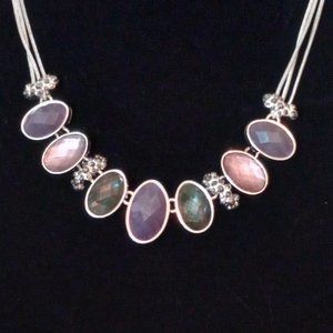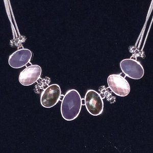 Like new Metal and acryilic Neclace and Earings. Egg shapes are faceted and are shiny in bright light. You will look great for any occasion.