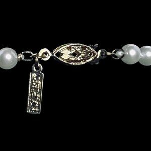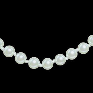 This Napier necklace embodies classic elegance with its single strand of faux pearls, each measuring 5.9mm and knotted between each pearl. The gold tone hook and box clasp add vintage charm, making it a timeless accessory.