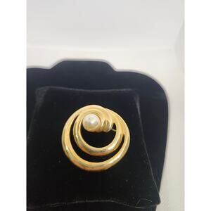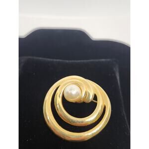 Napier Swirl Gold tone Faux Pearl Brooch *read*
