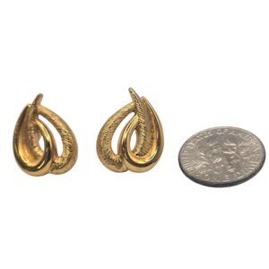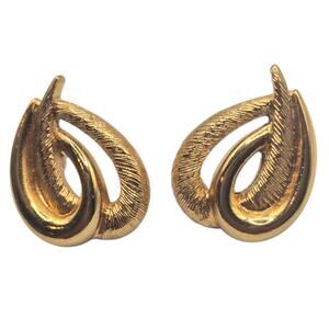 Napier Gold Tone Swirl Teardrop Post Earrings Pierced Textured Polished Signed