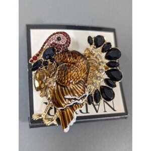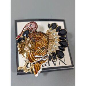 Napier Thanksgiving Turkey Brooch Fall Autumn Rhinestone NEW