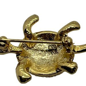 Add a touch of elegance and sparkle to your outfit with this beautiful Napier turtle brooch pin. The piece features stunning crystal rhinestones set in a gold-tone metal and is signed for authenticity. Perfect for any occasion, from weddings to graduations, anniversaries, and even Valentine's Day, this brooch is sure to make a statement and complement any outfit. Crafted with the highest quality materials, this vintage piece boasts a charming nature and animals & insects theme, making it a must-have addition to any jewelry collection. Its small and cute design is suitable for women of all ages and can also make a great gift for special occasions like Mother's Day, Christmas, and birthdays.