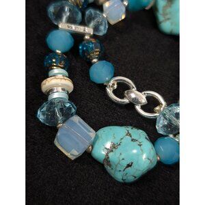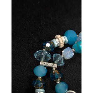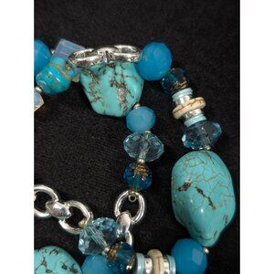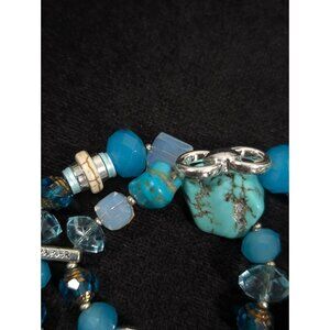 Napier Two Strand Blue Stone Faux Turquoise Glass Bead Stretch Bracelet 6.75 in