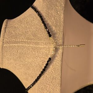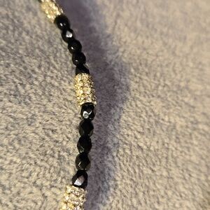Napier Vintage Black Faceted Beads and Rhinestone Beaded Necklace. 16 Inches.