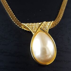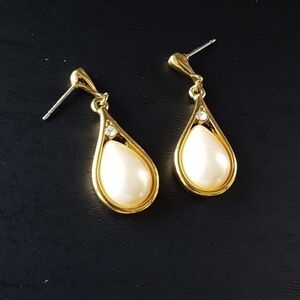 Perfect condition. Herringbone chain with pearl pendant period length 12 in. One drop post earrings. Will not tarnish.