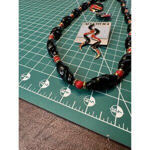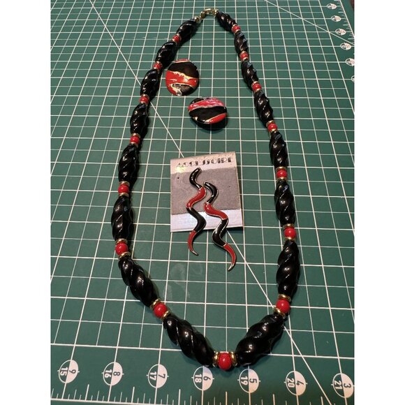 Napier Vintage Necklace 2 Earrings Black & Red Enamel Necklace Earrings & Brooch