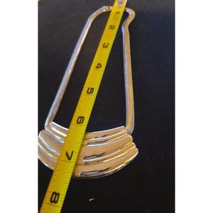 This piece of beautiful 1980's art deco jewelry is in good vintage condition with some light scratching in the silver toned metal.