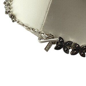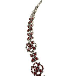 Napier Vintage Red Rhinestone Flower Statement Necklace Silver Tone