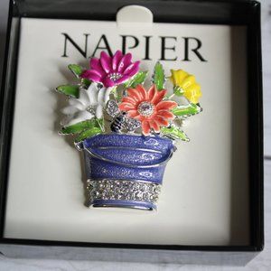 Napier Women's Brooch Fashion Pin Enamel Flower Garden Basket Pail