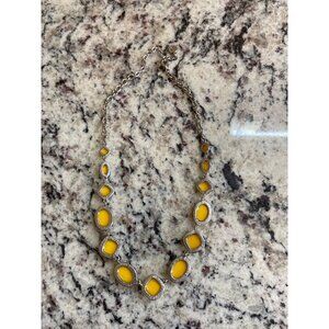 Napier Yellow Silver Tone Statement Necklace Bezel Set Oval Beads Bold Chunky