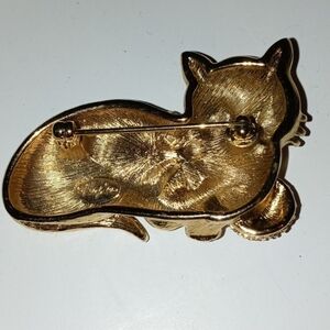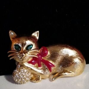 Napier cat brooch with emerald green jewel eyes and crystal stone ball