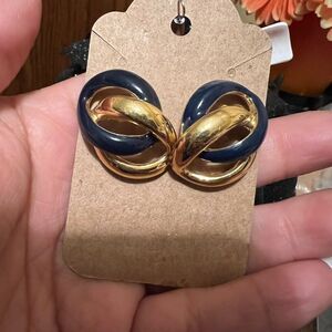 Napier Earrings Gold Tone Black Enamel Pierced Retro 80's 90’s Vintage
