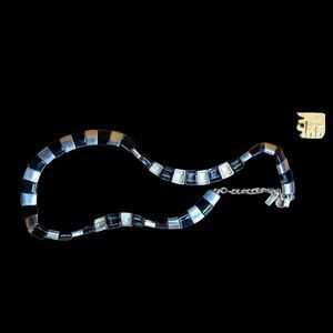 Vintage Napier silver black collar necklace that has light wear on edges. Doesn’t lay flat because of the way it lays around neck