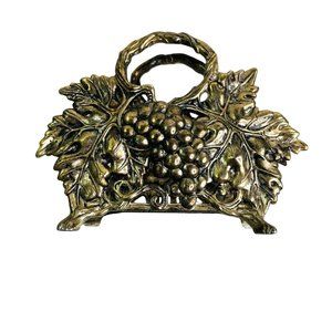 Vintage Silver Plated Grape Vine Footed Napkin Holder by Studio Silversmith. The color is more Gold than Silver. There is some light tarnish & wear but it is in overall nice vintage condition. It measures 5" tall & 7" wide.