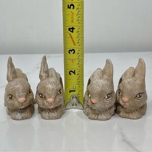 These appear to be vintage-style or "cottagecore" ceramic/resin bunnies with a brown wash and white dry-brush finish.