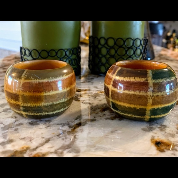 2 like-new multi-colored Wood Napkin Rings from India.