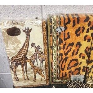 Fall Leaf Napkin Rings Metal Bronze IHR Animal Print Paper/Cloth Napkins Bundle.