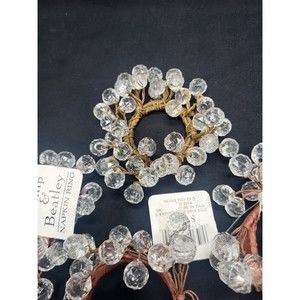 Purchased at Bed, Bath & Beyond clear glass beaded napkin rings. Realized one of the rings has a slightly different color. This cold easily be fixed. These were never used.