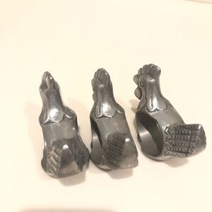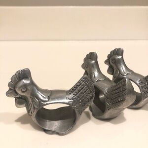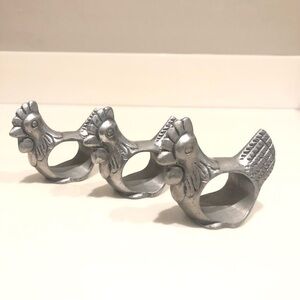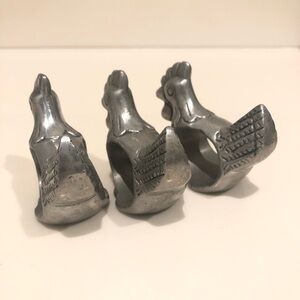 3 Napkin Rings, mod Rooster , mat silver tone metal, heavy pewter, very rustic table decoration