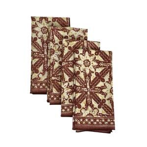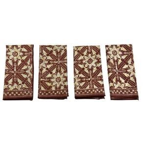 Napkins Cloth Set of 4 Batik Brown Beige Floral Cotton 17x17 Dinner Table