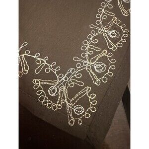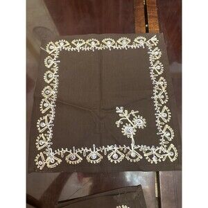 The product is a set of 6 square napkins with embroidered flower design in brown color with white and gold embroidery. These elegant napkins are perfect for various occasions such as Easter, weddings, parties, anniversaries, and Thanksgiving. Made from linen, these napkins are not only stylish but also add a touch of sophistication to any dining table setting. Perfect for adding a festive and decorative touch to your home during the winter season.