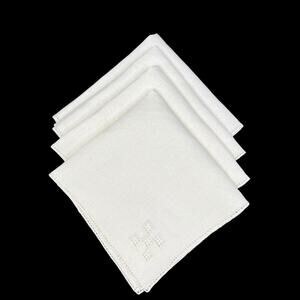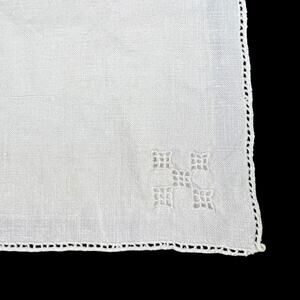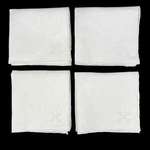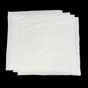 Napkins Set Of 4 Vintage White Cloth Detailed Corner Edge Cutwork 11" Square