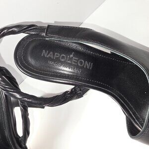 Napoleoni Black Leather Slingback Heels Size 39 Made in Italy Square Toe