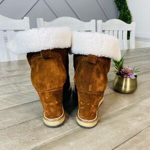 Napoleoni Tan Shearling Suede Leather Lace Up Wedge Platform Winter Boot 9.5
