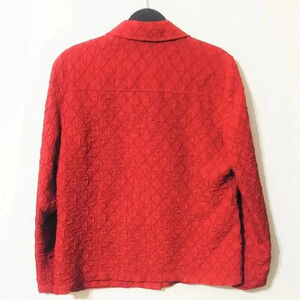 Nappa Valley Red Button up Jacket. Collared jacket with 1 usable front pocket. Red with black stitching. 74% polyester, 26% rayon.