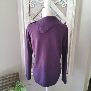 Purple high asymmetrical drape neck long sleeve jacquard knit sweater by Nappa Valley in a size small.