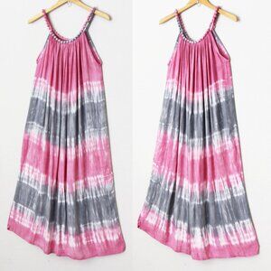 Napua Collection Honolulu Hawaii Beaded Halter Neck Maxi Dress Tie Dye Ombre OS