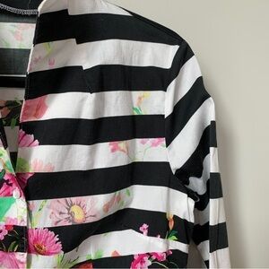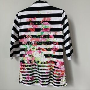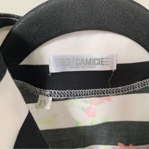 Nara Camicie Black & White Striped Floral Design Button Down Top Size M