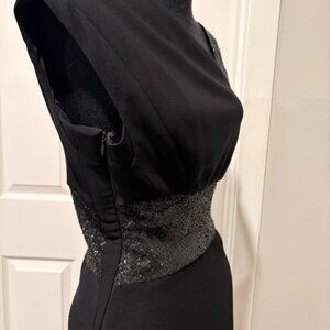 Narcisco Rodriguez Black Gown with Sequin Waist and detailing, Size 4
