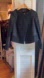A Carolyn Bissette Kennedy favorite - Narcisco Rodriguez reimagines the black lady jacket with exquisite piecework. Long sleeve and button closure. Detailed piecework across the arms and back - stunning and beautifully crafted. Asymmetrical wide collar. Moto accent