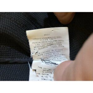 Shaping panels, stretchy fabric. Zipper opens top and bottom. Dry clean recommended by manufacturer, but there is a scent of what may be laundry product, so original owner may have hand washed it.