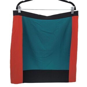 Narciso Rodriguez Pencil Skirt 16 Teal Rust Color Block 2 Way Zip Slit Edgy