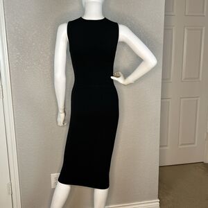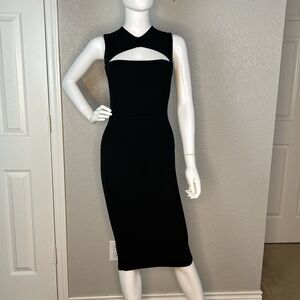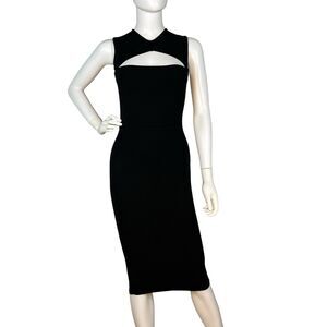 Narciso Rodriguez Size 2 Midi Dress Silk Blend Black Bandage Sleeveless Cutout